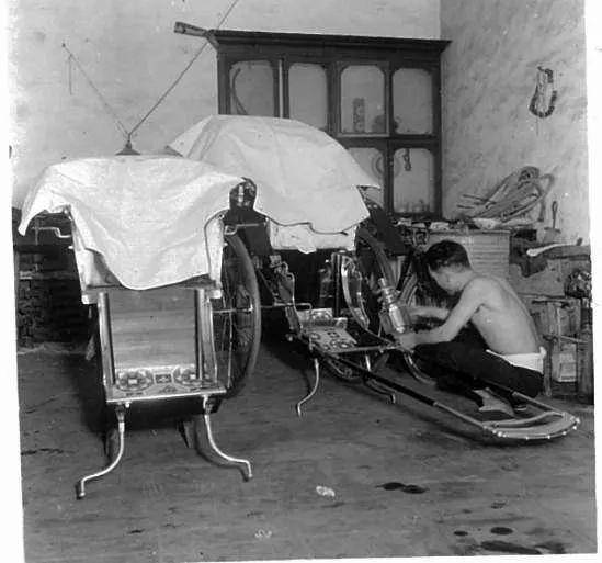 一个工人正在车行里制造洋车皇冠体育App下载 。